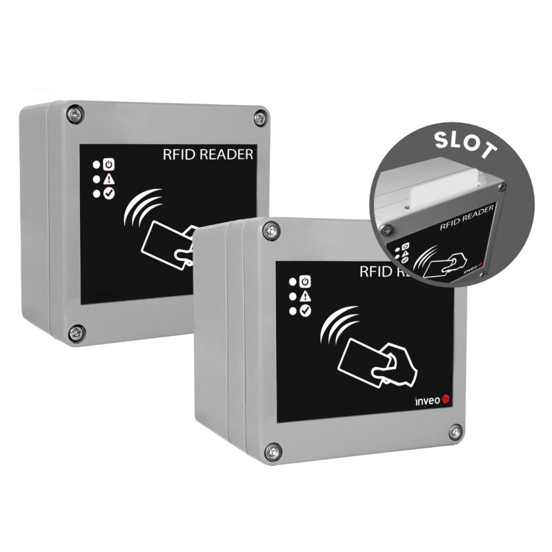 The RFID IND Modbus is an industrial RFID reader with an IP65 enclosure that supports the Modbus RTU protocol. It communicates with the Master device via an RS485 port. The device allows for control of two relay outputs and preview of two digital inputs.